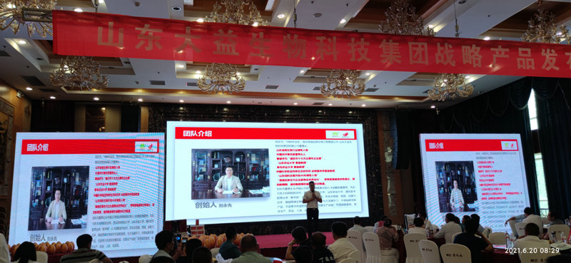3、6月20號 上午8:00在濰坊君豪國際酒店參加新產(chǎn)品發(fā)布會 山東大益生物科技集團有限公司在濰坊君豪國際酒店隆重舉辦了山東大區(qū)新產(chǎn)品發(fā)布會,并取得圓滿成功!