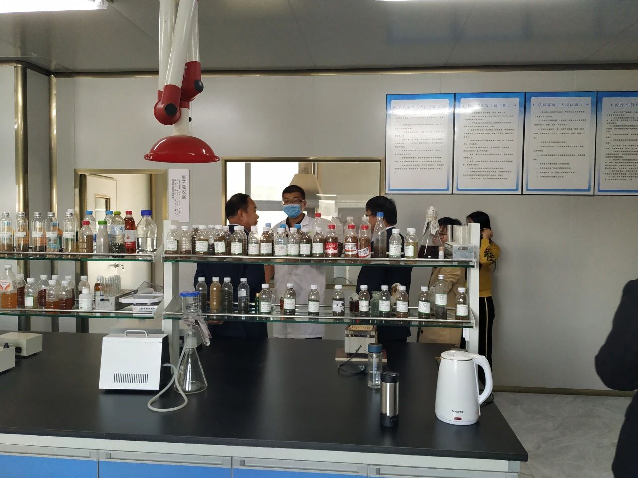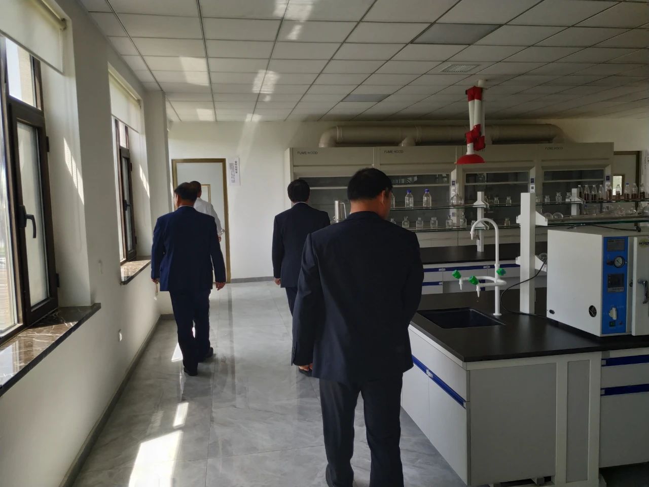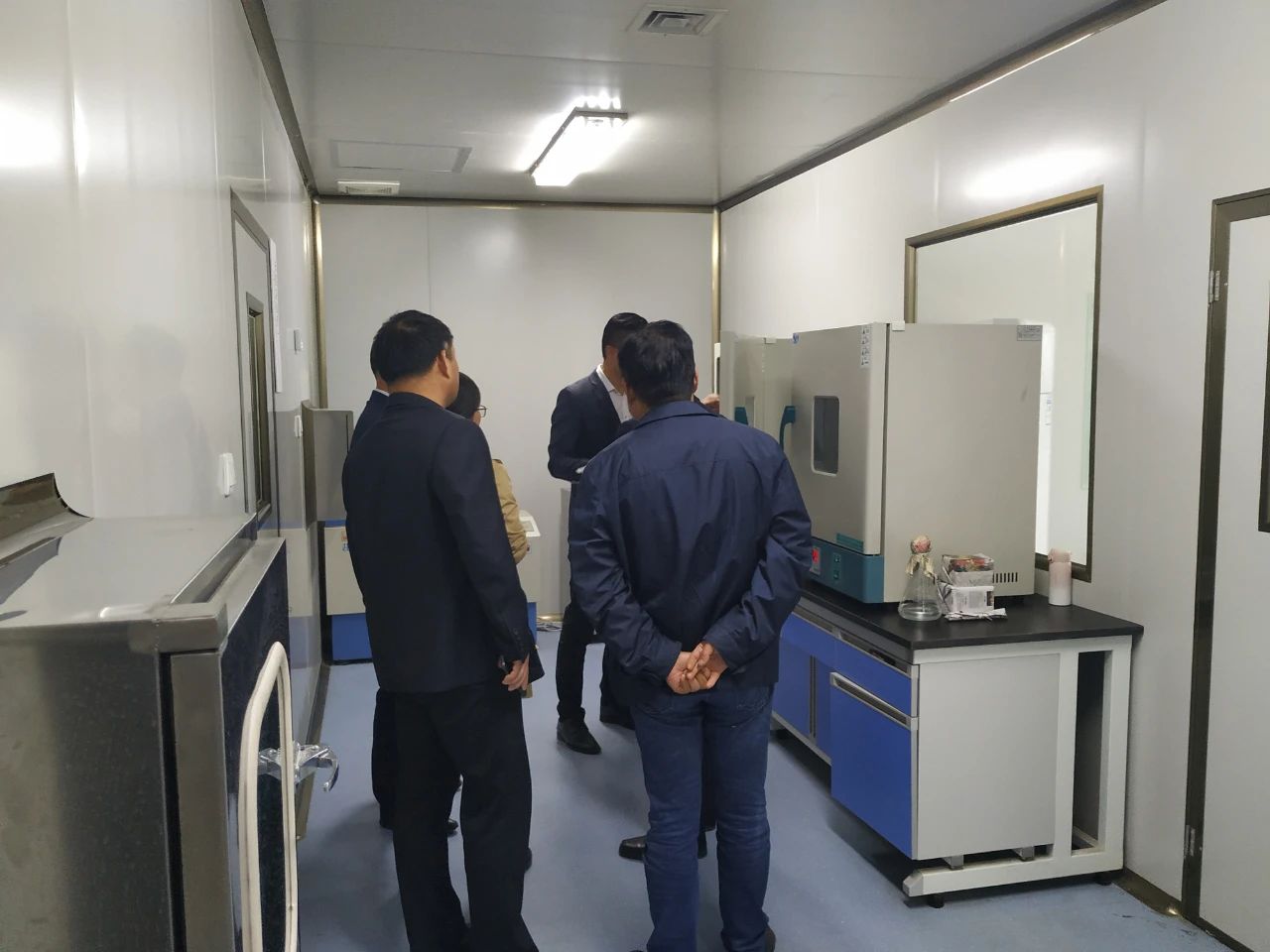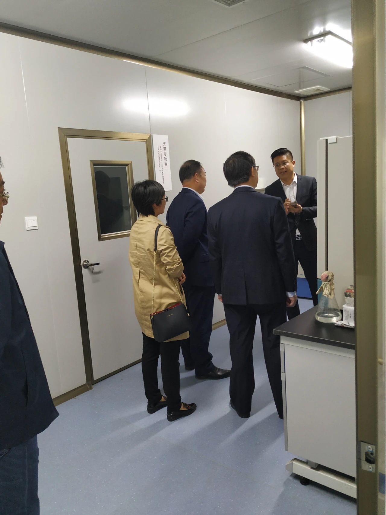 在劉總的帶領(lǐng)下,山東畜牧獸醫(yī)學(xué)院專家及領(lǐng)導(dǎo)先從生產(chǎn)車間開始考察參觀,然后是倉(cāng)庫(kù)、發(fā)酵車間、發(fā)酵罐設(shè)備、小料混合間、灌裝間、冷凍干燥間、標(biāo)準(zhǔn)化研發(fā)室、樣品留樣室等等。