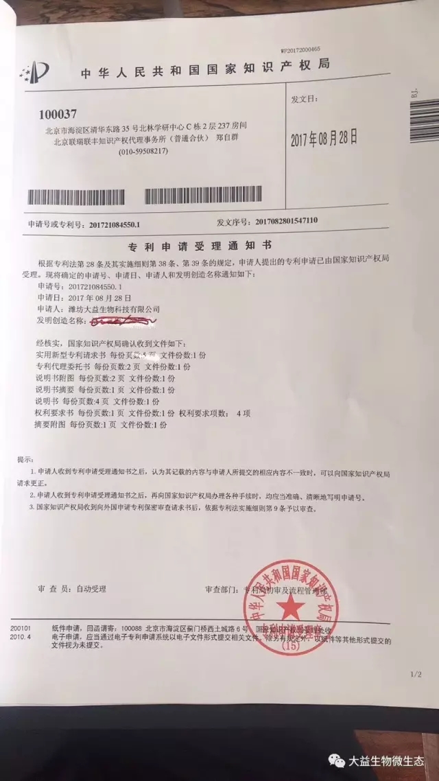 公司相關(guān)菌種專利18項(xiàng)審批證書(由于頁面問題僅部分展示)