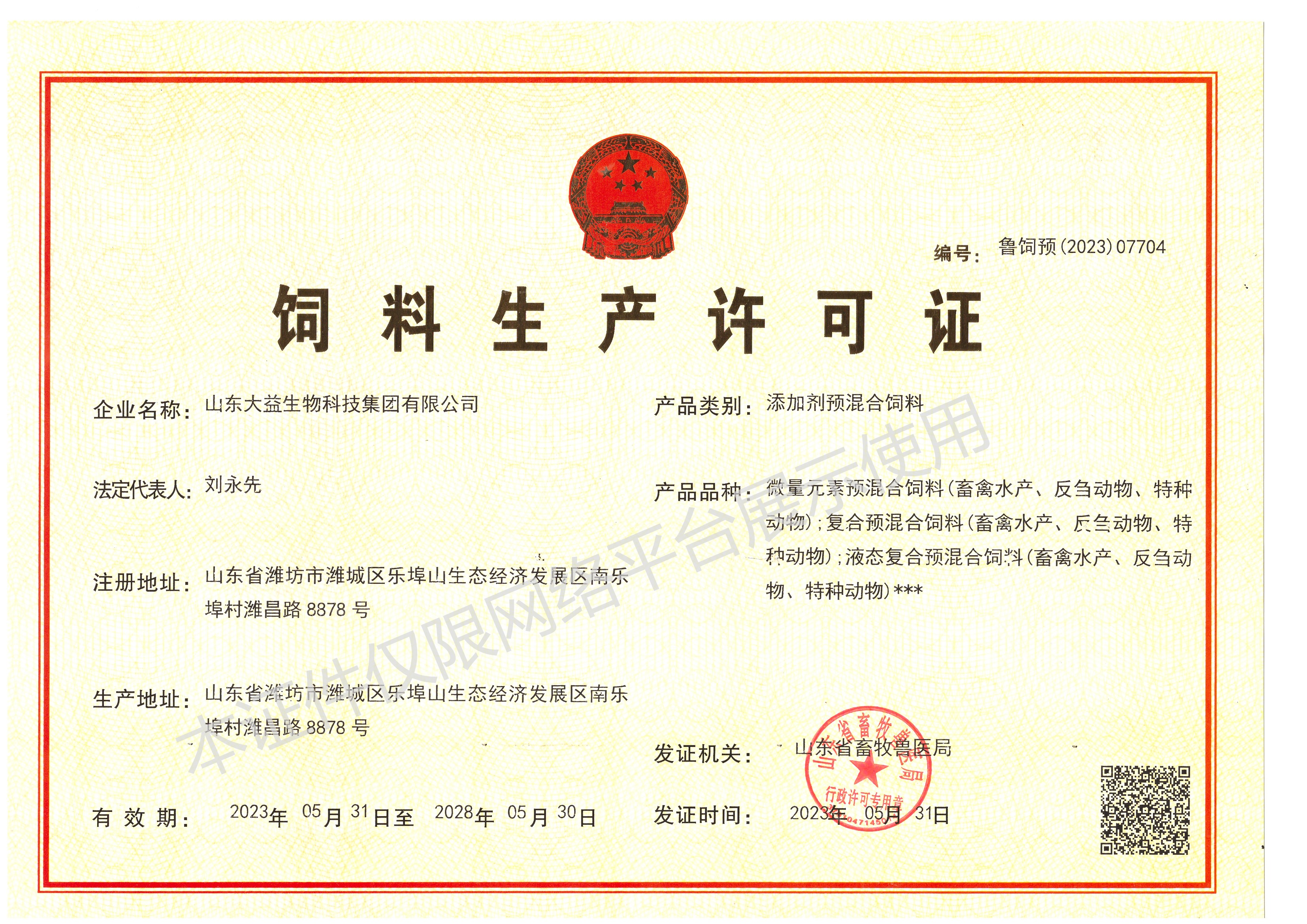 我公司預(yù)混合飼料生產(chǎn)許可證
